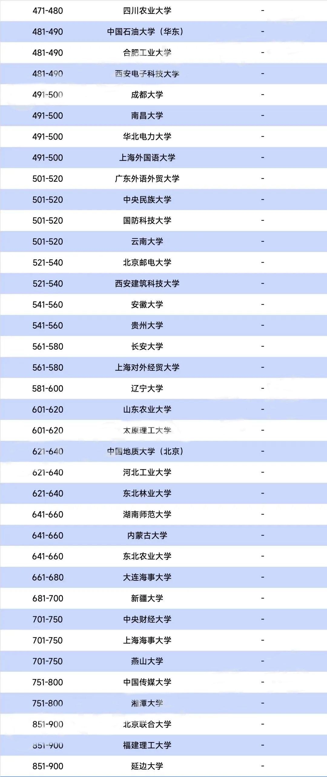 135所中国内地大学上榜
