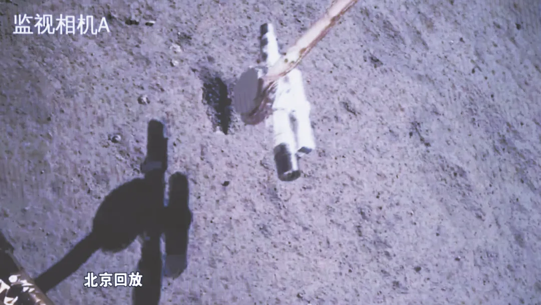 2024年6月4日7时38分,在北京航天飞行控制中心屏幕上拍摄的嫦娥六号取样回放画面。新华社记者 金立旺 摄