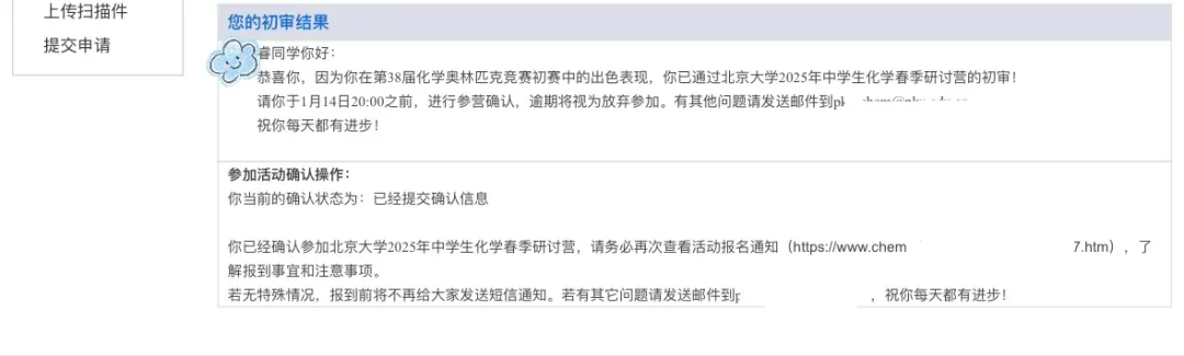 北京大学2025年中学生化学春季研讨营初审结果查询