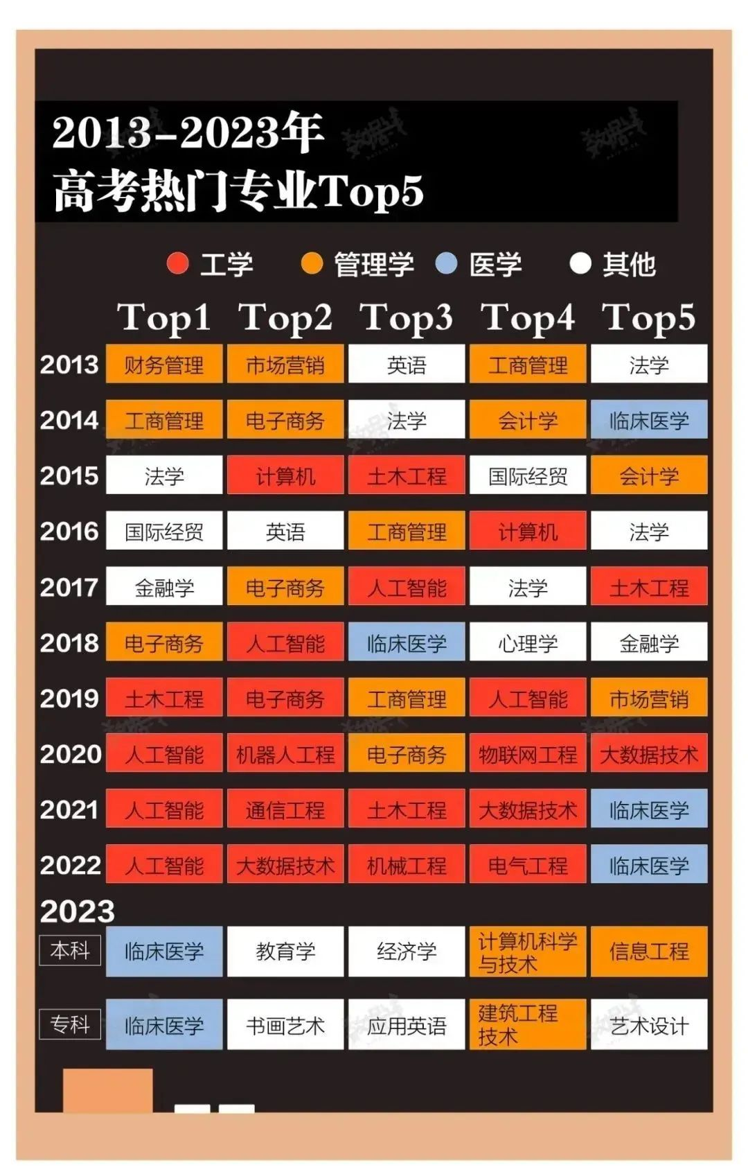 📈从近些年高考具体的专业热度搜索来看,每年还是有些许差异。专业热度的变化,其实就是社会发展的最大体现。从近年来高考热搜专业变化,不难看出就业市场对相关专业的需求转变,就业市场正步入一个“新旧动能转换”的全新阶段。