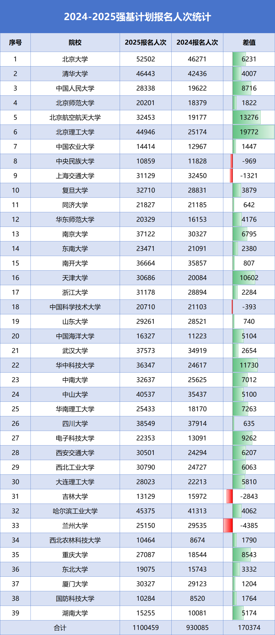 2025年39所985名校强基计划报名已全部结束,各校报名人次数据公布。2025年39校报名人次达110万!与2024年相比增长17万人次!