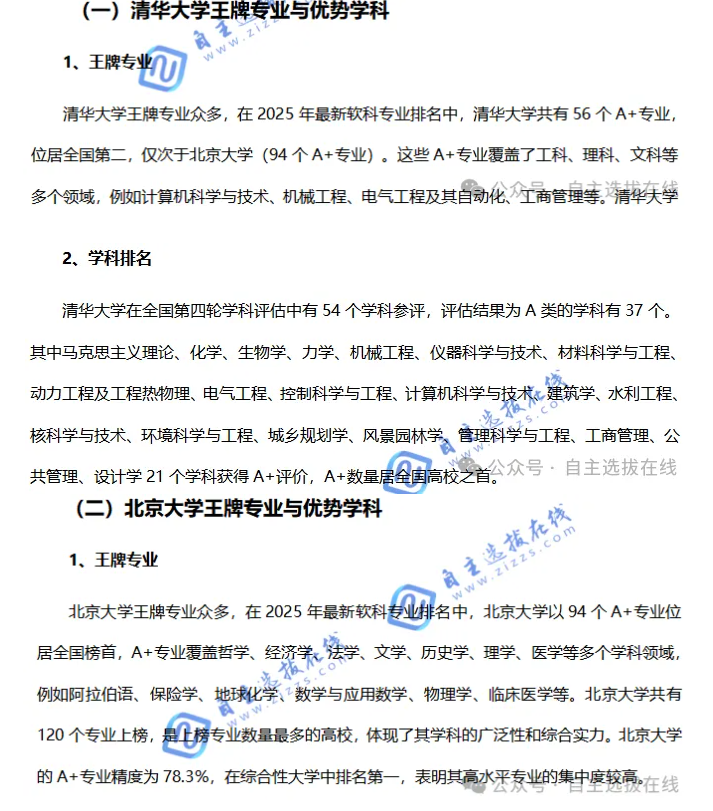 ⭐本资料详细介绍了清华、北大王牌专业及优势学科: