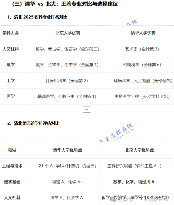 ⭐并对清北专业及学科做出对比,为考生家长提供选择建议: