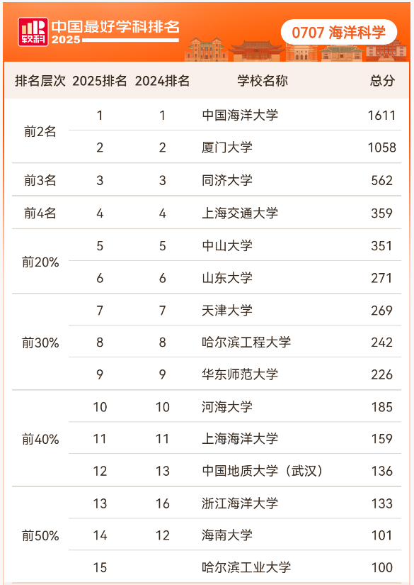 2025年10月15日,高等教育评价专业机构软科正式发布“2025软科中国最好学科排名”。对于2026年的考生而言,这份排名是他们选择未来学术道路的重要参考。自主选拔在线团队整理海洋科学完整排名结果,欢迎考生参考,分享!