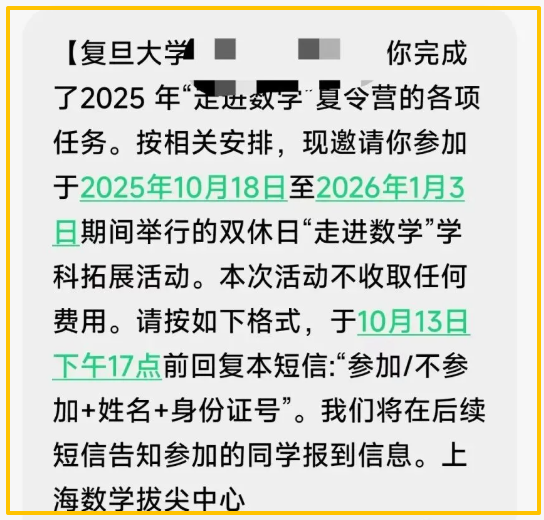 复旦大学定于2025年10月18日开展“走进数学”拓展活动,已收到通知的同学们请在规定时间内积极参与此次由复旦组织的数学探索之旅。