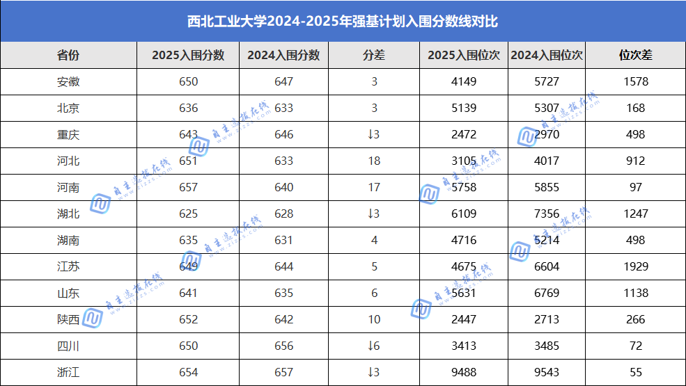 2024-2025年西北工业大学强基计划入围分数线分析