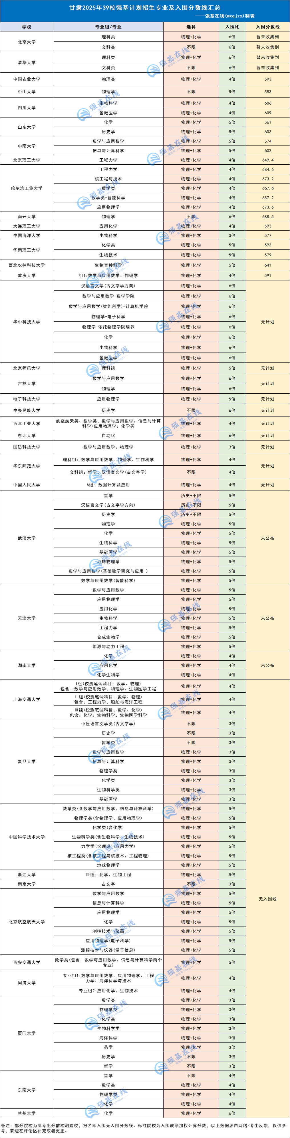 对于2026届的考生而言,若想通过强基计划步入985高校,那么首先必须高考成绩门槛达到各校的入围标准。然则,究竟需要多少分才能获得报考强基计划的资格?以你当下的成绩,又能够触及哪所心仪的学府呢?你与梦想之校的差距究竟是多少分?为了解答这些疑惑,我们精心整理了各省历年强基计划的入围分数线。本期,我们聚焦于2025年各高校在甘肃的强基入围数据,为你揭晓答案,一起来看!