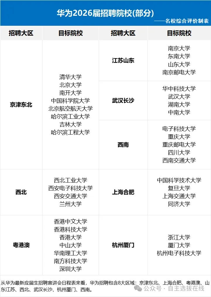 据网传2026华为校招名单中,共涉及39所985全国重点大学、73所211高校以及6所双非实力学校。总体来看,华为的校招偏向于重点大学,特别是985高校↓↓↓