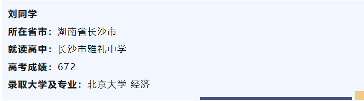 我是来自湖南省长沙市雅礼中学的刘同学,在高考中,我凭借裸分考入北京大学,省内排位第五名。在校期间,我的成绩通常稳定在前五名,还曾获得外研社杯英语素养大赛省一等奖。