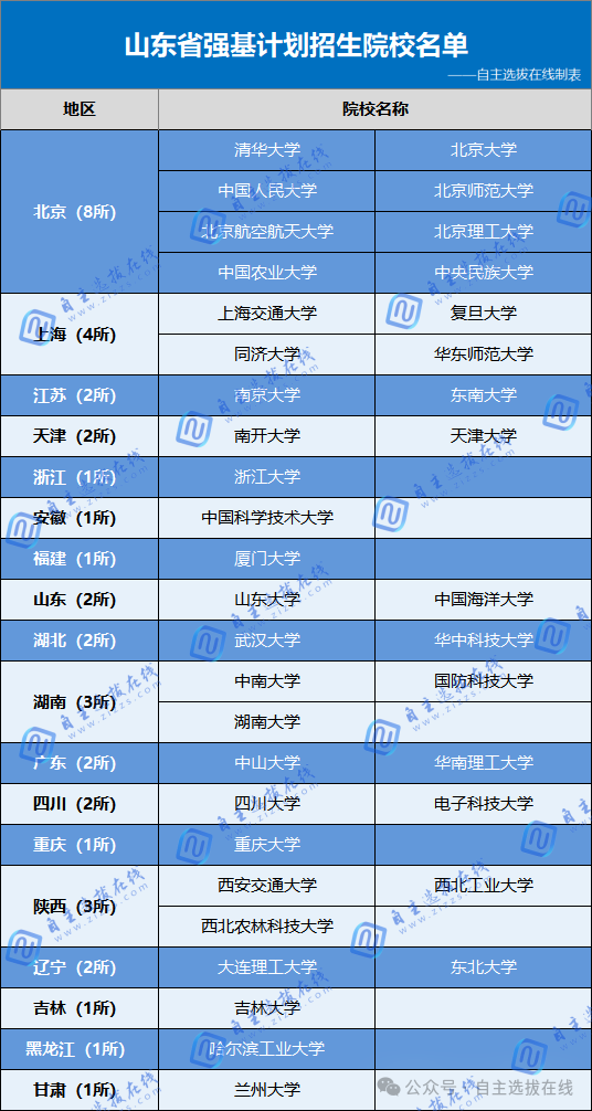 2025年39所开设强基计划的985高校皆在山东省进行招生,具体名单如下: