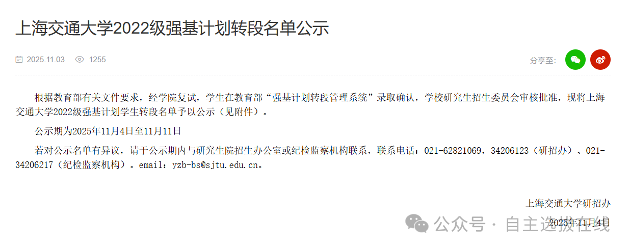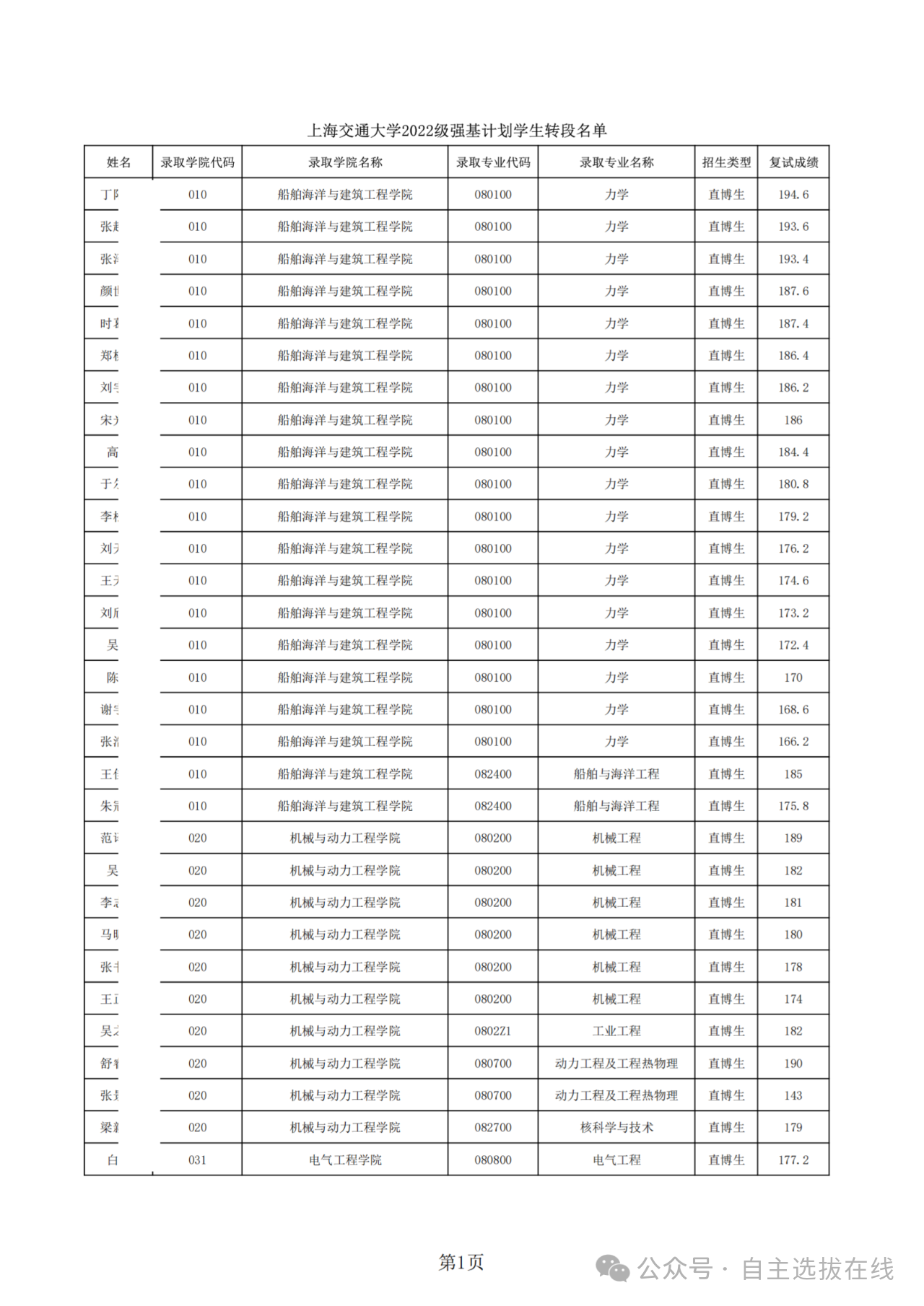 近日,上海交通大学2022级强基计划转段名单公示,自主选拔在线团队汇总整理了转段完整名单及转段专业、转段率等,大家一起来看!