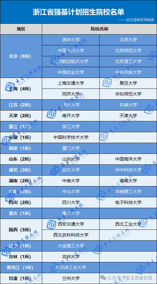 究竟有多少所院校在浙江省实施强基计划招生?根据最新的信息显示,针对浙江省的强基计划招生院校数量相当可观,2025年共37所强基计划高校在浙江省进行招生,而且这些院校都是国内享有盛誉的985重点建设高校。今天自主选拔在线团队为大家带来浙江省强基报考院校介绍,供大家进行择校参考!