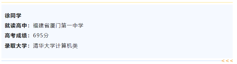 2026年强基计划备战已经开始!往年学姐学长的经验不仅能够提供更详细备考攻略,还能让低年级考生在报考强基的过程中避免“踩坑”,给下一届考生很大的帮助!今天为大家分享来自福建厦门第一中学徐同学的高考备考经历。他平时成绩优异,获得过数学竞赛省一等奖,以及北京大学夏令营的“优秀营员”,竞赛和强基的学习经历帮助他高考取得695分的好成绩,成功上岸清华大学!一起来看他是如何做的?