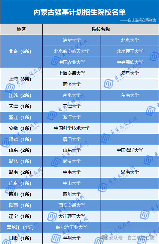 有哪些强基高校在内蒙古招生?