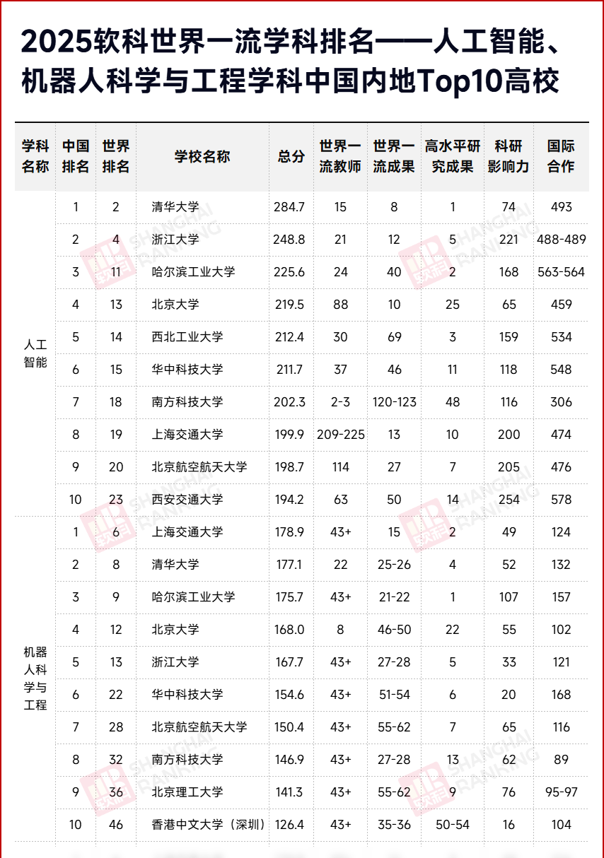 首次发布!2025年人工智能、机器人科学与工程学科世界排名,来了!