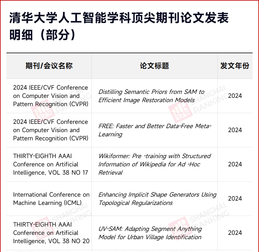 在本次的人工智能学科排名中,清华大学在部分指标表现优异,例如“顶尖期刊论文”“重要期刊论文”均排在全球第1名。