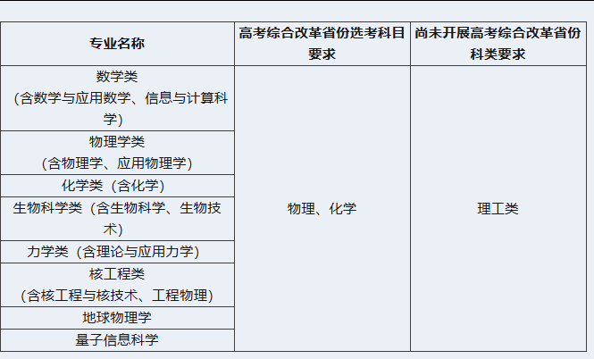符合普通高等学校招生全国统一考试报名条件,具有强烈的专业兴趣、科研志向和吃苦耐劳的精神,综合素质优秀,基础学科拔尖,有志于服务国家重大战略需求,有志于从事相关领域科学技术工作的高中毕业生均可报名。报名考生分为以下两类: