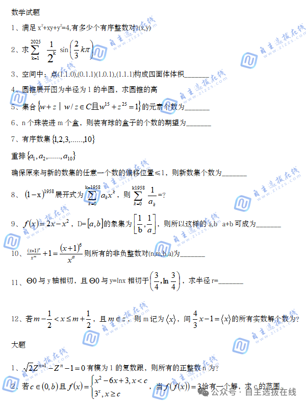 ✅试题分值:数学物理满分各100分,大题第一题12分,第二题18分