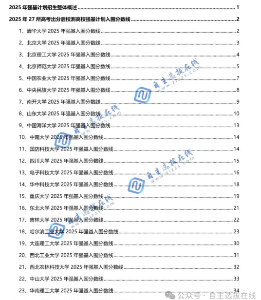 高考多少分能入围强基计划?这是近期家长咨询的高频问题,也是考生报考的核心依据。为了解答大家的疑惑,自主选拔在线团队汇总了39所试点高校2025年强基计划的入围分数线。数据清晰呈现哪些专业‘门槛友好’,哪些院校竞争激烈,希望能为2026届考生提供精准的报考参考,避免盲目冲刺或错失机会。