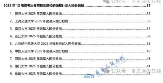 由于篇幅问题,各院校入围分数线就不全部展示了,自主选拔在线团队整理了《2025年强基计划入围分数线汇编》电子资料,入围是强基录取的关键一步,考生可参照入围分数及位次精准定位本省竞争力,科学指导2026届及低年级考生家长择校!点击红字领取!