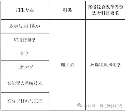 符合高考报名条件,综合素质优秀或基础学科拔尖,并有志于将来从事相关领域科学技术工作,具有强烈的专业兴趣、科研志向和吃苦耐劳精神的高中毕业生均可申请报名。申请报名的考生分为以下两类: