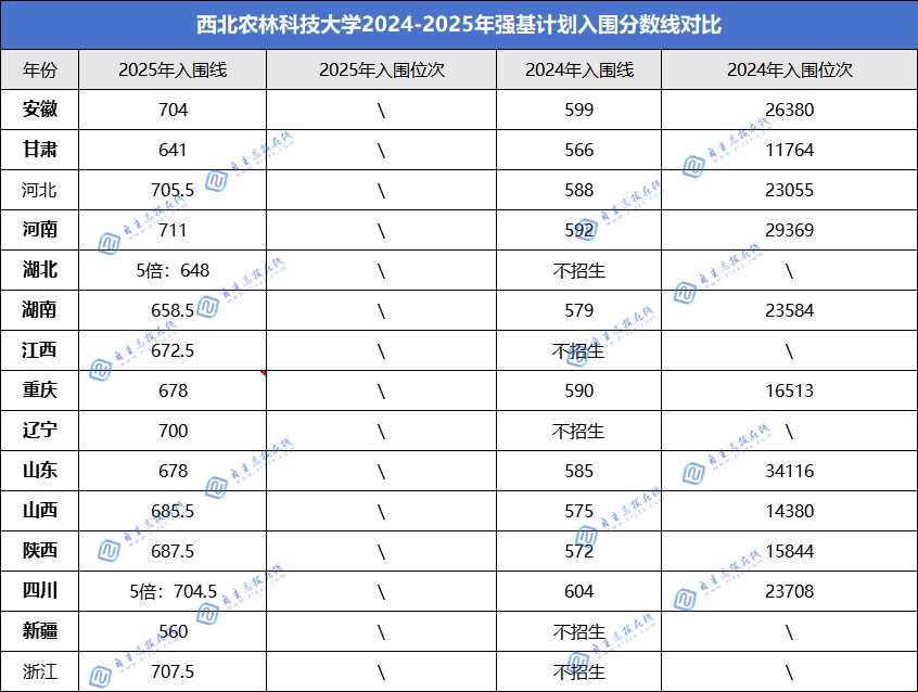 2024-2025年西北农林科技大学强基计划入围分数线分析
