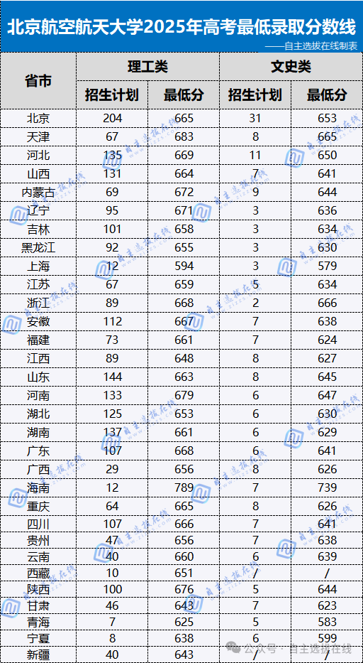 因为北航为高考出分前校测模式,所以没有强基入围分数线。自主选拔在线团队收集整理了北航官方发布的2025年各省市高考最低录取分数线,供各位考生家长参考。