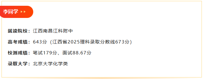 2026年强基计划备战已经开始!有哪些备考经验可以进行参考借鉴?今天为大家分享的是,来自江西南昌江科附中李同学的强基计划备考经历。他曾参与过化学竞赛并取得银牌,通过强基计划校测优秀发挥获得降30分优惠,以高考643分上岸北京大学!一起来看他是怎么做的!