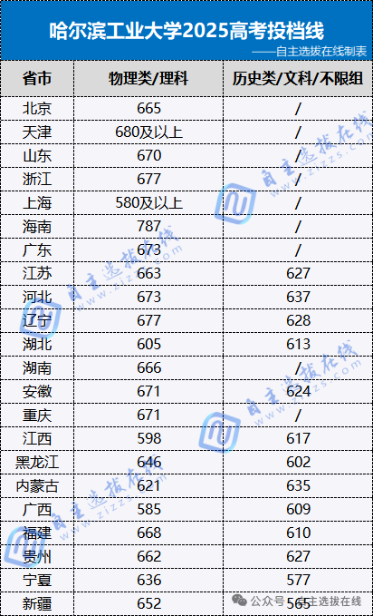 因为哈工大为高考成绩加权入围模式,所以强基入围分数线不是高考裸分成绩,以下是哈工大官方发布的2025年强基计划分省分专业入围标准,仅供各位考生家长参考。