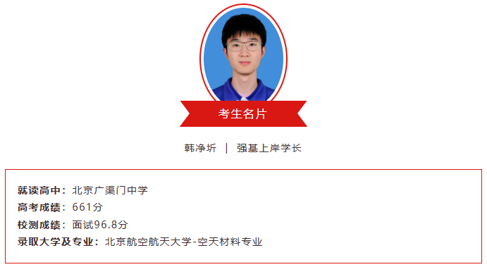 2026年强基计划备战已经开始!有哪些备考经验可以进行参考借鉴?今天为大家分享来自北京广渠门中学韩净圻同学的强基备考经历。他获得化学竞赛省二,并最终以校测面试96.8分的高分,顺利上岸北航强基计划!