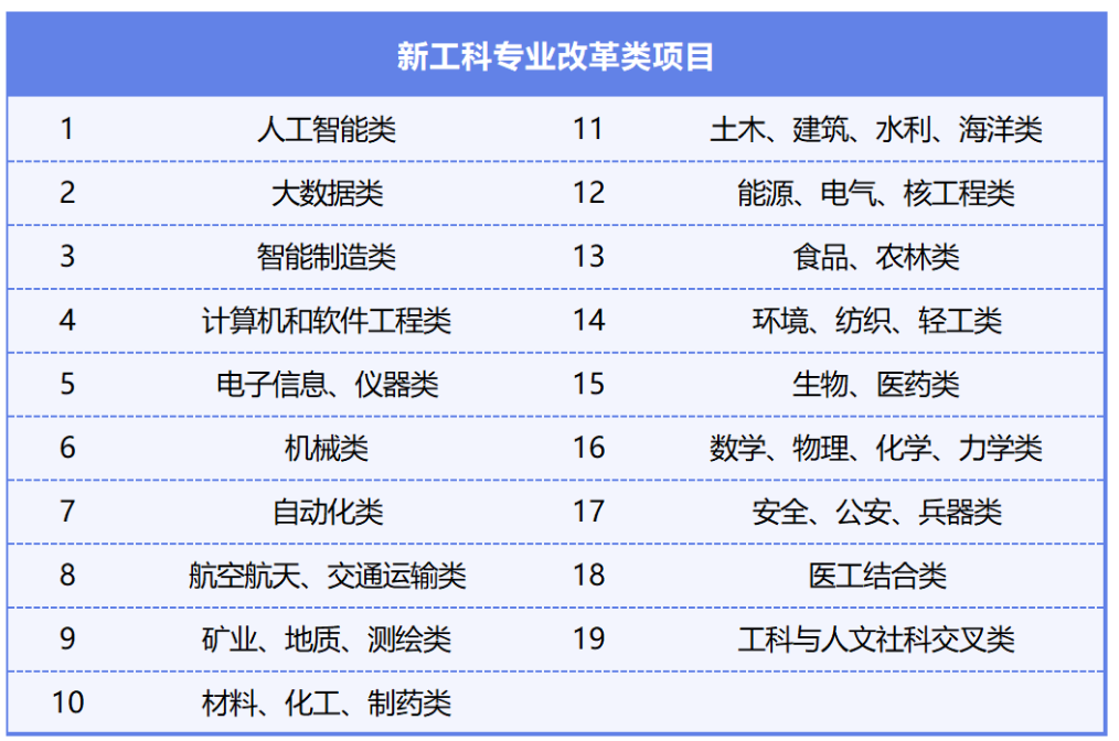 “新工科”专业改革类项目(19个项目群):