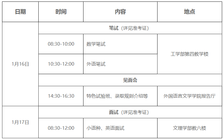 二、测试于2026年1月16日至17日(2天)在武汉大学校内举行,具体日程安排如下。