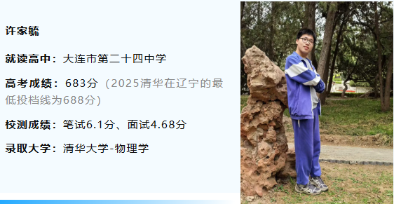 2026年强基计划备战已经开始!有哪些备考经验可以进行参考借鉴?今天为大家分享来自辽宁大连市第二十四中学许家毓同学的清华强基备考经验。他曾获物理竞赛省一等奖,对物理学有着强烈的兴趣所以报考了清华强基计划;最终以683分的成绩,降5分被清华大学物理学强基录取!一起来看他是如何做到的!