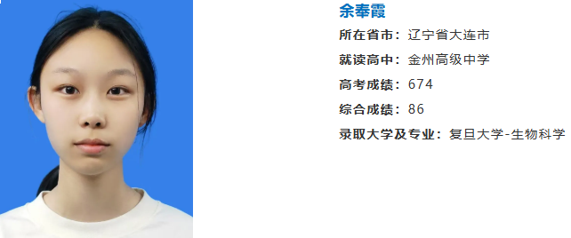2026年强基计划备战已经开始!有哪些备考经验可以进行参考借鉴?今天为大家分享来自辽宁省大连市金州高级中学余奉霞同学的复旦强基备考经历。她虽然高中成绩优异,但距离顶尖985高校统招线仍有差距,最终她凭借强基计划,以高考674分成功上岸复旦!2025年复旦大学在辽宁省物理类统招最低分为685分,这相当于降11分录取!一起来看她是如何做的!
