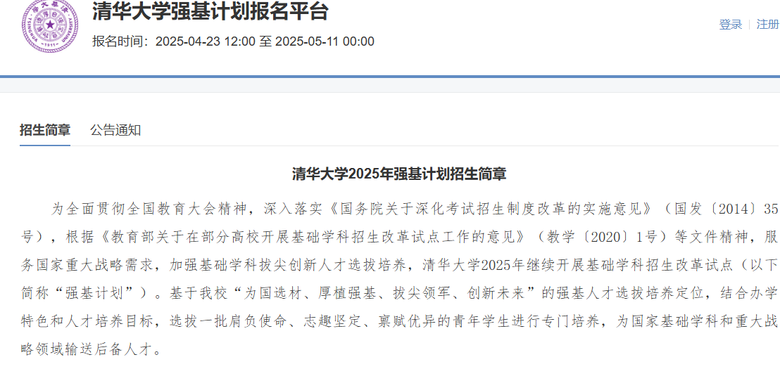 一、清华大学强基计划报名入口