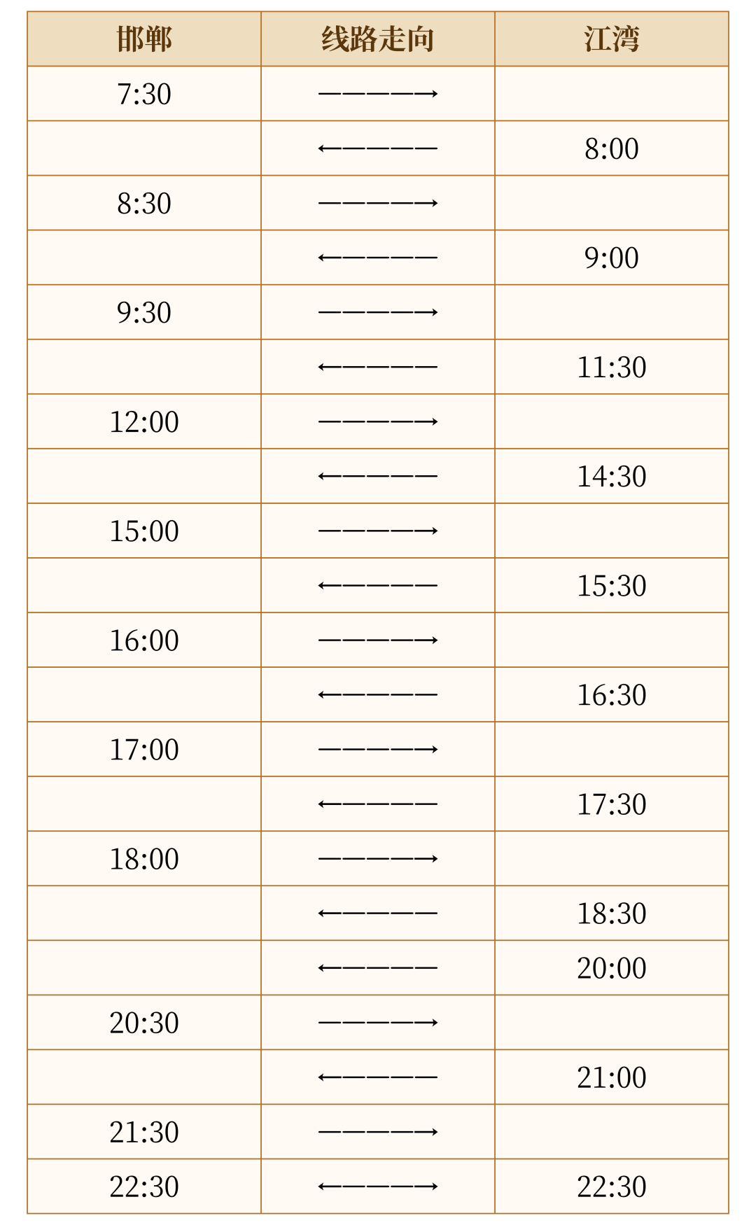 三、邯郸—江湾(工作日)