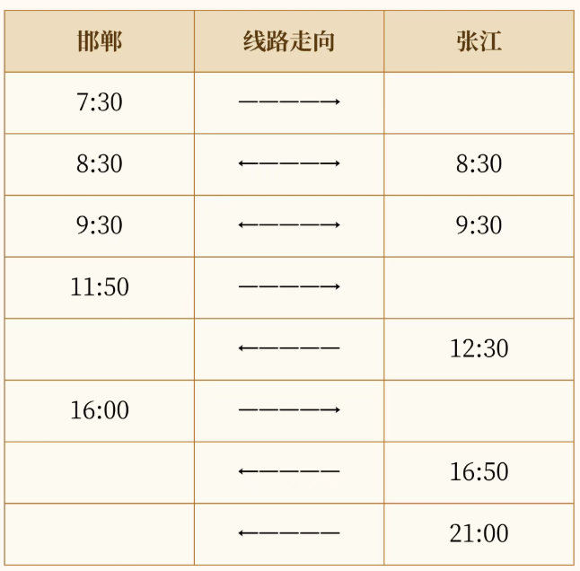 五、邯郸—张江(工作日)
