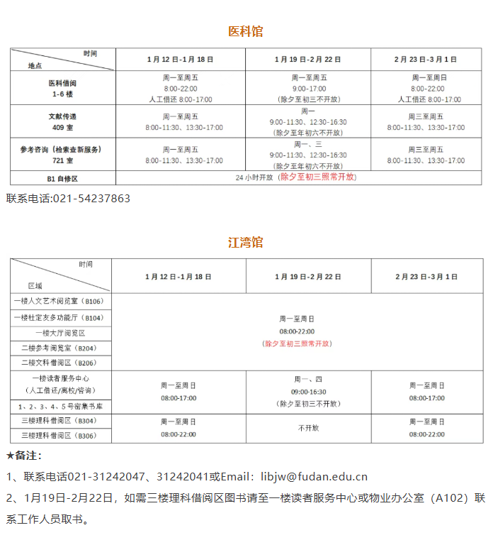 寒假春节期间,“复旦源”各场馆假期安排如下: