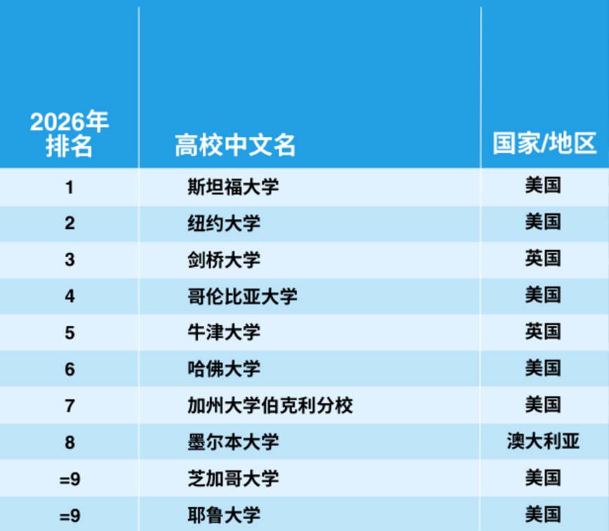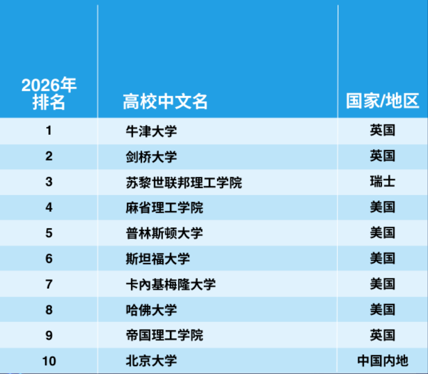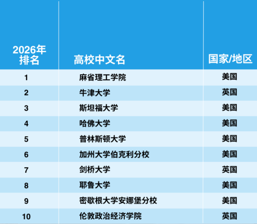 2026年泰晤士高等教育世界大学学科排名于今日正式揭晓,发布了11个学科领域的大学排名。世界大学学科排名采用与世界大学排名相同的严谨方法,运用教学、研究环境、研究质量和国际展望等18项绩效指标,提供全球最全面、最平衡的学科排名。