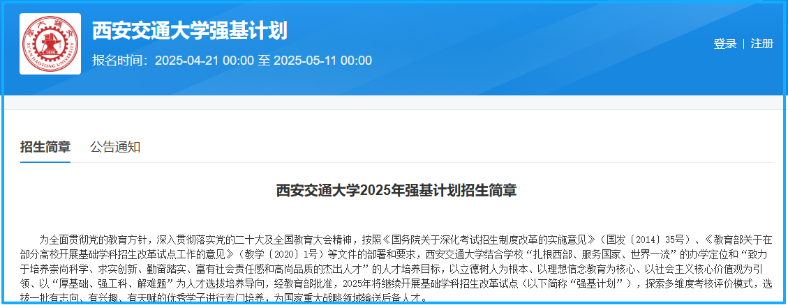 西安交通大学强基计划报名入口