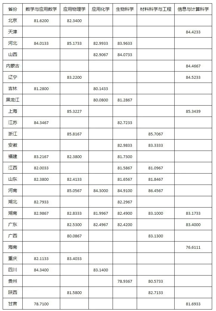 中南大学强基计划招生专业为数学与应用数学、应用物理学、应用化学、生物科学、材料科学与工程、信息与计算科学6个专业,招生省份为北京、天津、河北、山西、内蒙古、辽宁、吉林、黑龙江、上海、江苏、浙江、安徽、福建、江西、山东、河南、湖北、湖南、广东、广西、海南、重庆、四川、贵州、陕西、甘肃,分省分专业招生计划以中南大学强基计划报名系统公布为准,第二类考生招生计划单列。各专业招生科类及选考科目要求如下: