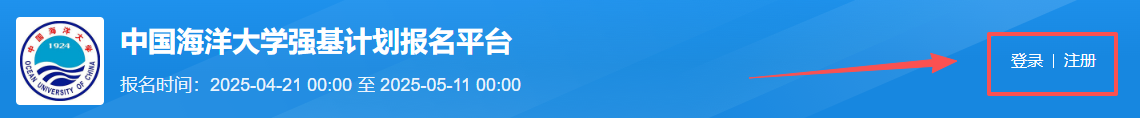 考生于规定报名时间内登录中国海洋大学强基计划报名平台,按要求准确、完整地完成网上报名。