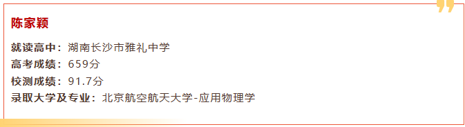2026年强基计划备战已经开始!有哪些备考经验可以进行参考借鉴?今天为大家分享来自湖南省长沙市雅礼中学陈同学的学习经验,她高一学习过生物竞赛,高二成绩稳定在年级前100名,高三因压力成绩跌至近三百名后反思调整心态,通过专注文化课学习与强基备考,最终以高考659分上岸北京航空航天大学强基计划,一起来看她的文化课学习方法与强基校测备考经验有哪些方面值得借鉴 !