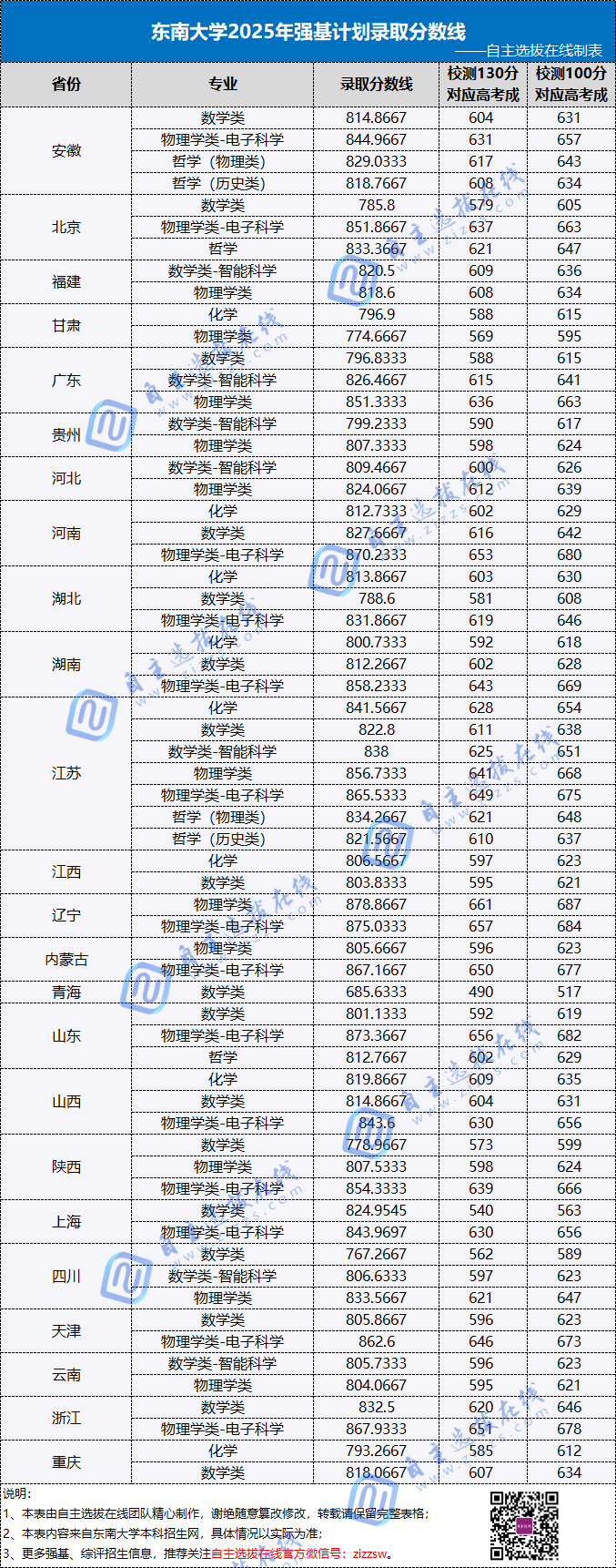 因为是“复交南”模式,东南大学没有入围分数线,但从录取分数线上推导,仍能看出其降分效果。