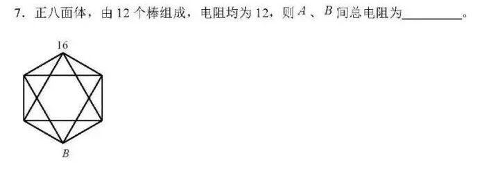 例如这道物理题,涉及立体电路,需要用到等效电路法,需要电路分析的对称简化技巧,是典型的竞赛知识,课内难以解决。