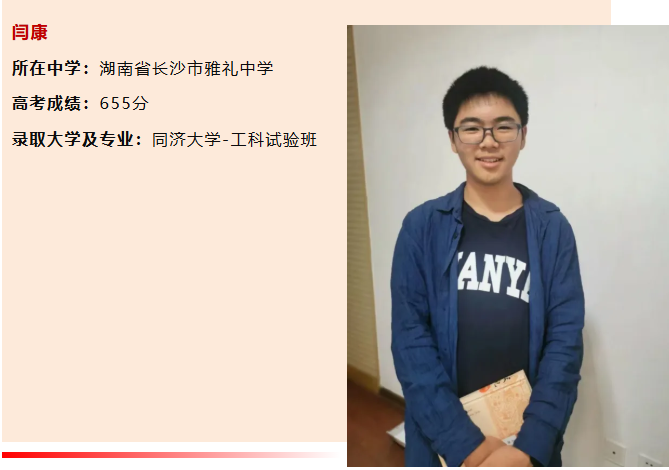 2026年强基计划备战已经开始!有哪些备考经验可以进行参考借鉴?今天为大家分享来湖南省长沙市雅礼中学闫同学的学习经验,他平时成绩稳定在650分左右,有高一一年的物理竞赛学习经历,因专业与自身目标相符性备考浙大强基,虽然没有以强基圆梦浙大,但仍以高考655分上岸同济大学!一起来看他的强基校测备考经验有哪些方面值得借鉴 !