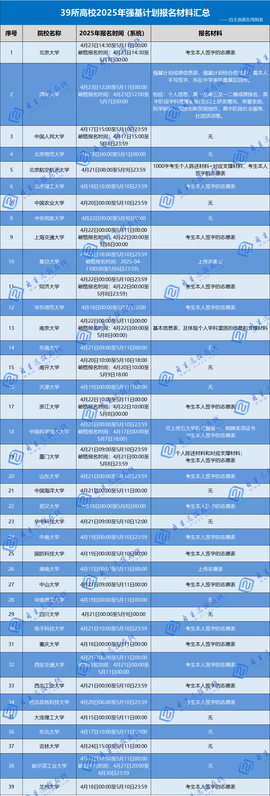 首先,我们整理了2025年39所高校强基计划报名材料要求,带大家了解一下强基报名需要哪些材料,见下表: