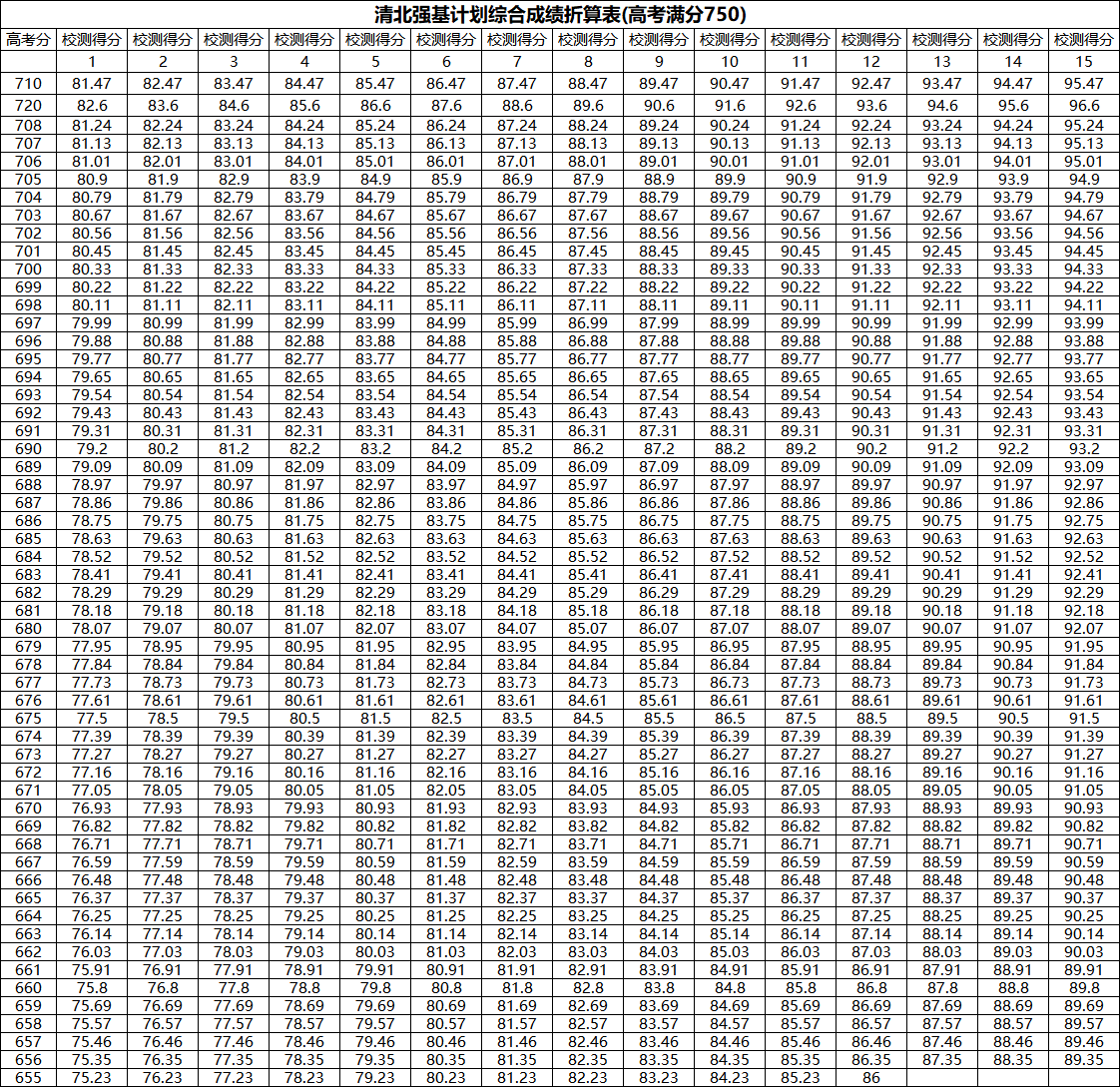 依据综合成绩计算公式,可以换算出往年清北强基考生的高考及校测参考分数,供大家对照参考。