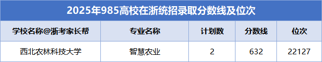 2025年985院校智慧农业专业在浙江招录数据(部分):