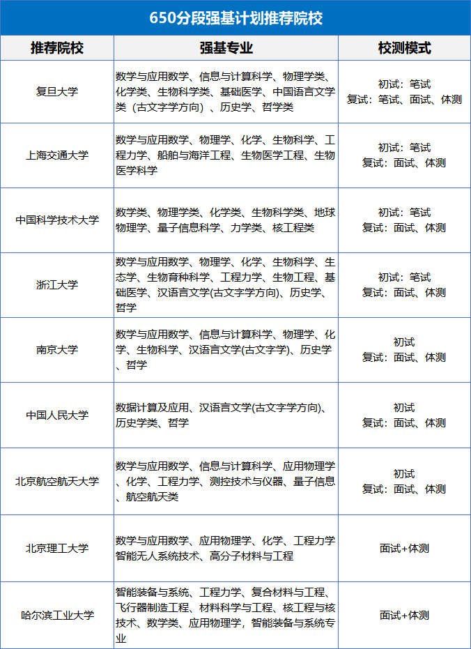 高考成绩在650分左右,其实属于很高的一个分数段,那么,这个分数可以选择哪些强基计划招生院校呢?接下来为大家带来650分左右强基招生院校,大家一起来看!